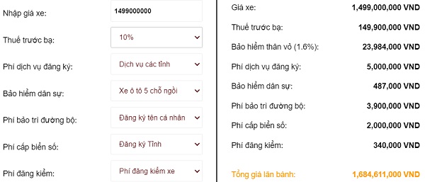 | Bảo hiểm thân vỏ xe | Giá trị xe x 1,6%/Năm | |||