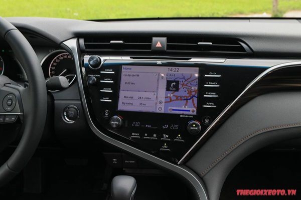 Màn hình cảm ứng 8 inch có tích hợp đầy đủ hết các tiện ích cùng tính năng định vị GPS lần đầu được Toyota trang bị trên sản phẩm của mình, Kiểu thiết kế màn DVD tạo hình kiểu chữ Y với các nút chỉnh bố trí đều hai bên. Camry 2019 được trang bị hệ thống âm thanh JBL 9 loa cao cấp. Camry 2019 được trang bị hệ thống điều hòa tự động 3 vùng độc lập giúp người ngồi trên xe thoải mái mọi vị trí ngồi.