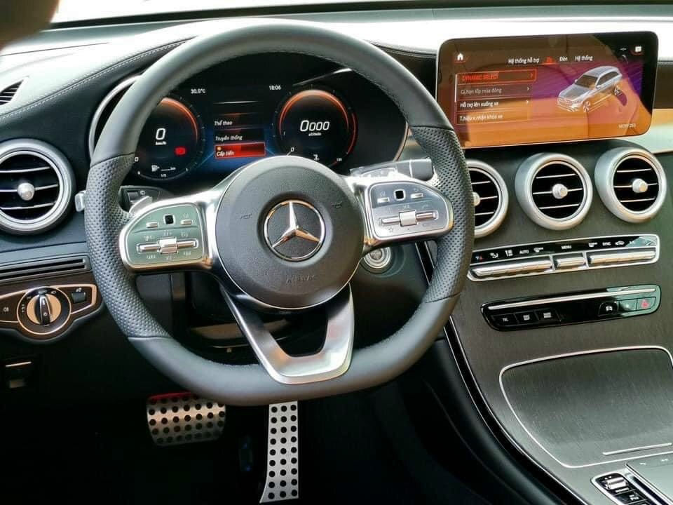 Phần đầu xe được thiết thế theo phong cách thể thao AMG với lưới tản nhiệt dạng kim cương bắt mắt, hốc hút gió cỡ lớn. Đèn pha Full LED tự động điều chỉnh tầm chiếu xa