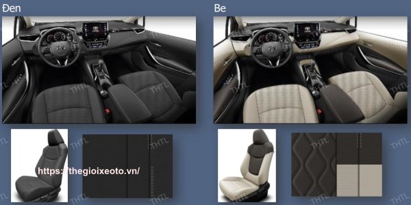 Nội thất Toyota Altis 2023 có 2 tông màu nội thất với ghế da màu đen và màu kem áp dụng cho tất cả các model