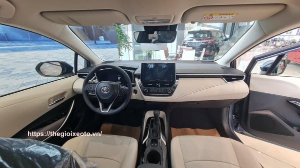 Thiết kế nội thất Corolla Altis 2023 lấy cảm hứng từ sự tối giản nhưng vẫn có sự tiện nghi, đặc biệt trên phiên bản 1.8 HEV mới, mẫu xe được trang bị thêm một số tiện nghi như: màn hình hiển thị thông tin trên kính lái HUD, màn hình cảm ứng 9-inch dạng nổi kết nối không dây với điện thoại thông minh, màn hình hiển thị đa thông tin 7-inch, hệ thống điều hòa tự động 2 vùng độc lập với cửa gió trước và sau…