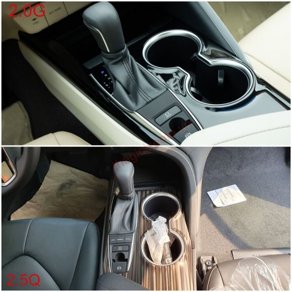 Về hộp số thì trên Camry 2.5Q được ốp gỗ và tích hợp 3 chế độ lái thể thao trong khi đó 2.0G chỉ được trang bị nhựa đen bóng và không có chế độ lái thể thao.