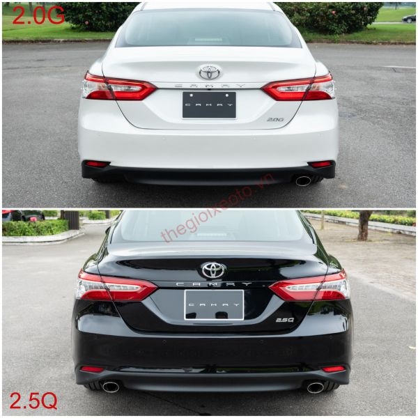 Phần đuôi xe thì trên phiên bản cao cấp hơn Camry 2.5Q được trang bị bô thể thao kép trong đó Camry 2.0G chỉ có ống xả đơn, ngoài ra thì cụm đèn hậu trên bản 2.0G cũng chỉ được trang bị đèn xinhan Halogel.